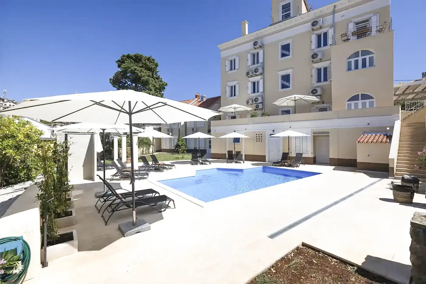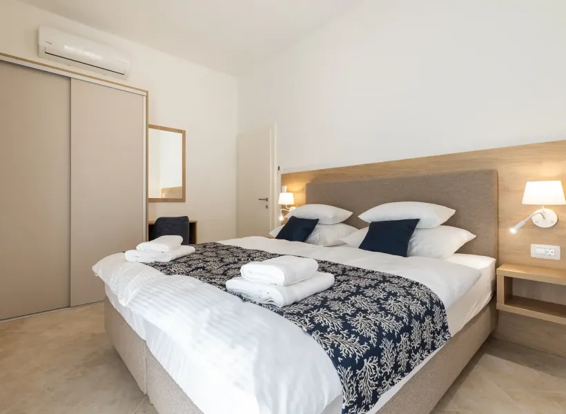 Welcome to our charming apartment building on the fragrant island of Lošinj — a place where Mediterranean ease meets relaxed hospitality. Here you will find the ideal retreat for a personalized vacation, far away from the hustle and bustle yet right in the heart of the action. Our modern, lovingly furnished apartments offer everything you need to feel at home – with a fully equipped kitchen, comfortable living area, and private balcony or terrace for quiet hours outdoors.