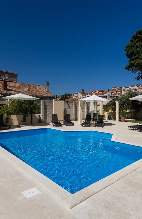 Whether it’s breakfast in the morning sun, a good book in the shade, or a glass of wine under the starry sky, our outdoor areas invite you to linger and enjoy. The location of the house is quiet yet central: in just a few minutes you can walk to the crystal-clear sea, charming bays, restaurants, shopping, and the idyllic old town.